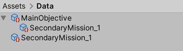<figure><img src="https://3475550444-files.gitbook.io/~/files/v0/b/gitbook-x-prod.appspot.com/o/spaces%2FWP70ItOegbJjXGyNP2E7%2Fuploads%2F8CvkedSB67rAxBbidGEq%2FAddedSubasset.png?alt=media&#x26;token=1630e5f6-5ab5-4f4c-80ff-d74ca049f01e" alt="" width="316"><figcaption><p>SecondaryMission_1 is now a sub-asset</p></figcaption></figure>